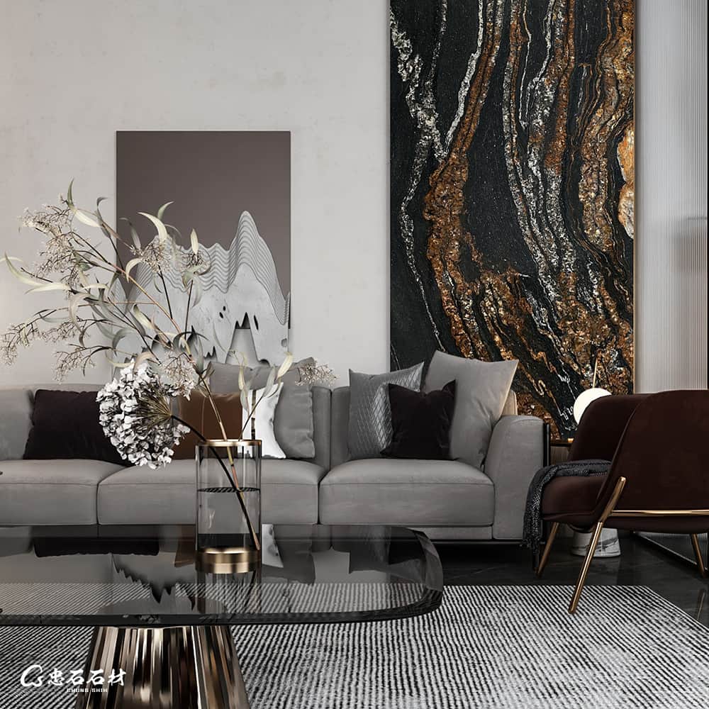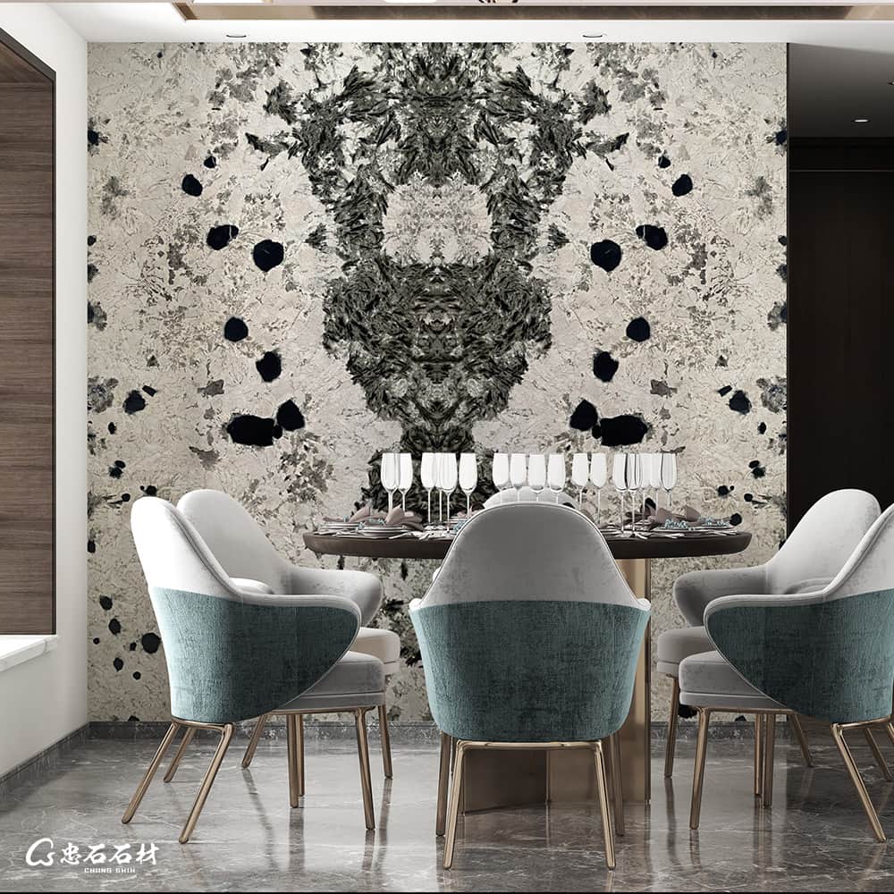 黑色的紋理恣意隨性的流淌在灰白色肌底上,勾勒出別具一格的美感,讓人無限遐想。